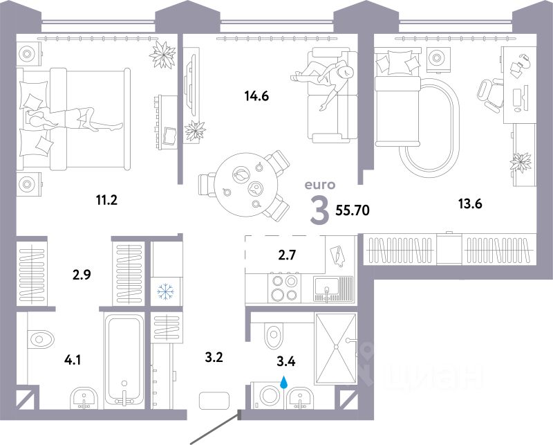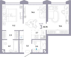 Продаётся 3-комнатная квартира в строящемся доме (Дом 1), срок сдачи: II-кв. 2026, общей площадью 55.7 кв.м., на 27 этаже. Многоэтажные жилые дома с объектами инфраструктуры, расположенные по адресу: г. Москва, внутригородское муниципальное образование Очаково - Матвеевское, ул. Озерная, вл. 42.