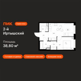 Продаётся 1-комн. квартира площадью 38,8 кв.м на 5 этаже 43 этажного дома (Корпус 1.1, Секция 1) проекта ПИК 2-й Иртышский. Светлый просторный подъезд на уровне земли, функциональная планировка, большие окна, c отделкой.