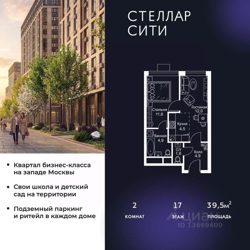 Продается квартира от надежного застройщика Tashir Estate в квартале бизнес-класса Stellar City в ЗАО Москвы.