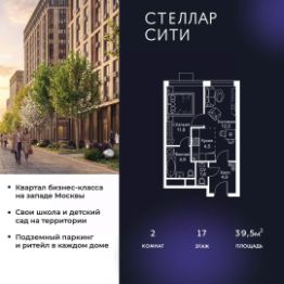 Квартира находится на 17 этаже, 4 корпуса жилого квартала Stellar City — микрогорода будущего на орбите Москвы.