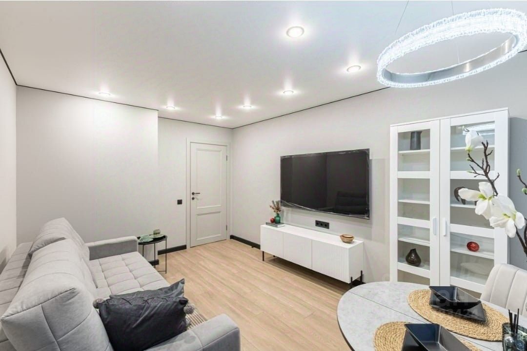 Обстановка создает современную и стильную атмосферу. Вся мебель и техника остаётся новым жильцам. Просторные комнаты и функциональная планировка позволяют использовать пространство максимально эффективно. все комнаты изолированные, есть гардеробная, кухня площадью 6,5 кв. м оборудована всем необходимым (холодильник Индезит, посудомоечная машина, фильтры для питьевой воды, вытяжка и духовка. В квартире есть один отдельный санузел, со стиральной машинкой с сушкой. Для вашего комфорта предусмотрены подогрев пола на балконе и ванной комнате,