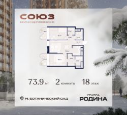 Продаётся 2-комнатная квартира площадью 73.9 м² на 18 этаже в Жилом Комплексе "Союз".