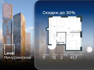 В жилом квартале, расположенном на границе с природным заказником "Долина реки Очаковки", продаётся 2-комнатная квартира площадью 41.70 кв.м без отделки. Квартира расположена на 12 этаже 24-этажного корпуса 11 в жилом комплексе бизнес-класса Level Мичуринский (компания Level Group/Левел групп).