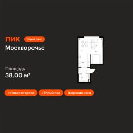 Продаётся 1-комн. квартира площадью 38 кв.м на 13 этаже 29 этажного дома (Корпус 2.1, Секция 1) проекта ПИК Москворечье. Светлый просторный подъезд на уровне земли, функциональная планировка, большие окна, c отделкой.