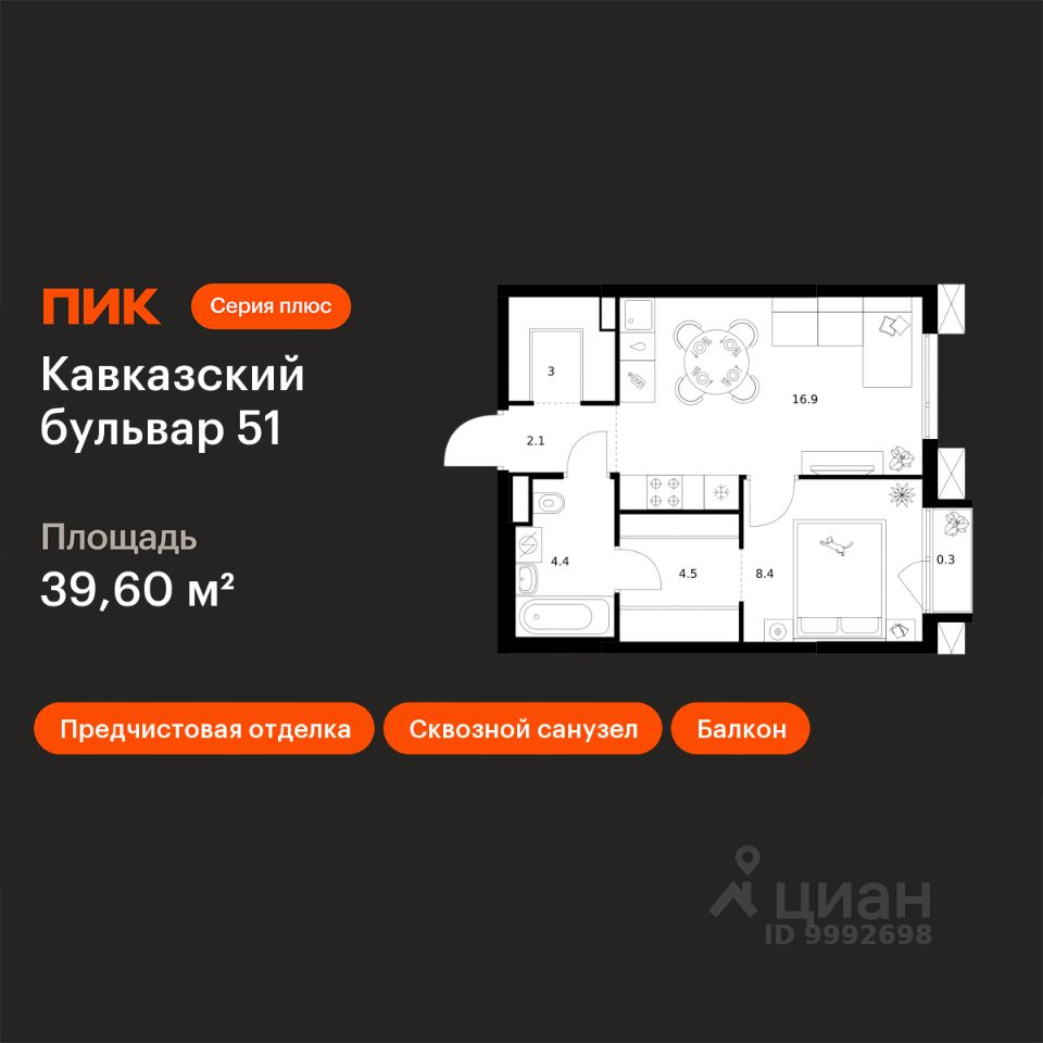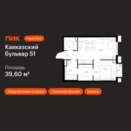 Продаётся 1-комн. квартира площадью 39,6 кв.м на 3 этаже 9 этажного дома (Корпус 3.4, Секция 1) проекта ПИК Кавказский бульвар 51. Светлый просторный подъезд на уровне земли, функциональная планировка, большие окна, предчистовая отделка.