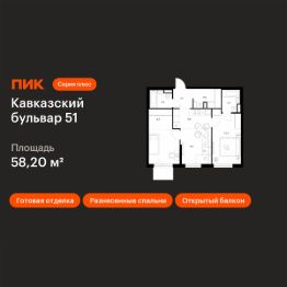 Продаётся 2-комн. квартира площадью 58,2 кв.м на 23 этаже 32 этажного дома (Корпус 3.6, Секция 3) проекта ПИК Кавказский бульвар 51. Светлый просторный подъезд на уровне земли, функциональная планировка, большие окна, c отделкой.