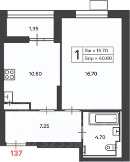 1-комн. кв., 40,6 кв.м