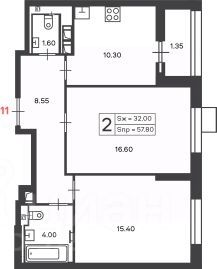 2-комн. кв., 57,8 кв.м