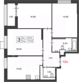 Продажа квартира, Новочерёмушкинская улица, земельный участок 41А, этаж 2, кв. 134