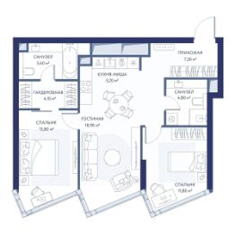 Продаётся 2-комнатная квартира в строящемся доме (Корпус 2), срок сдачи: II-кв. 2028, общей площадью 71.5 кв.м., на 4 этаже. Архитектурный проект, в котором превосходство достигается за счет выверенных форм и чёткой геометрии элементов.