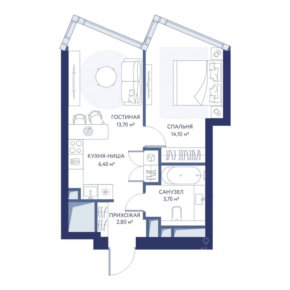 Продаётся 1-комнатная квартира в строящемся доме (Корпус 2), срок сдачи: II-кв. 2028, общей площадью 42.7 кв.м., на 5 этаже. Архитектурный проект, в котором превосходство достигается за счет выверенных форм и чёткой геометрии элементов.