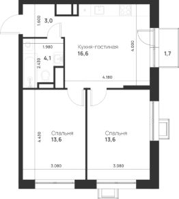 Продаётся 2-комнатная квартира в строящемся доме (Essence), срок сдачи: III-кв. 2026, общей площадью 51.4 кв.м., на 13 этаже. Многофункциональный жилой комплекс по адресу: г. Москва, НАО, поселение Сосенское, п. Газопровод
