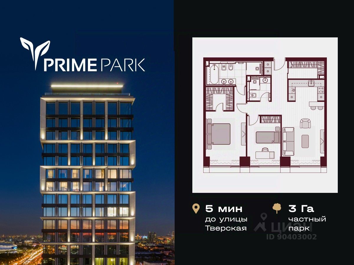 Жилой квартал Prime Park воплощает все преимущества premium-living. Престижная локация на Ленинградском проспекте, 37: - 5 мин. от Тверской улицы, Патриарших прудов и Белой площади, - 20 мин. до аэропорта "Шереметьево" или "Москва-Сити", - 4 парка — Ходынское поле, Петровский и Чапаевский парки, Березовая роща, - 4 станции метро — "ЦСКА", "Аэропорт", "Динамо" и "Петровский парк". Многократный победитель премий European Property Awards и Urban Awards, а также на протяжении пяти лет остается самым продаваемым проектом в своем сегменте. Premium-living Консьержи предугадывают желания резидентов и берут на себя выполнение практически любых бытовых задач. В квартале также есть парк-рейнджер и охрана. Для дополнительного удобства в МОПах предусмотрены почтовые комнаты, колясочные и комнаты для мытья лап домашних питомцев, комната для хранения интернет-заказов. Наличие сервисного входа для персонала позволяет разделить трафик, сохраняя приватную атмосферу в лобби. Резидентам нужно открыть только одну дверь, чтобы оказаться дома: valet-парковщики открывают дверь автомобиля и отвозят его на подземный паркинг, беллмены открывают двери при входе в башню и помогают донести вещи до квартиры, интеллектуальная система обеспечивает бесконтактный вызов лифта. Развитая инфраструктура Близость к центру Москвы, рядом крупнейший ТЦ "Авиапарк", ВТБ Арена, Мегаспорт, ВЭБ Арена, в окружении красивейших парков, включая ультрасовременный Ходынский парк площадью 25 га с панорамными качелями, набережной, фонтанами, детскими и спортивными площадками. На территории квартала предусмотрены приватный фитнес-центр с 25-метровым бассейном и спа, подземный паркинг с кладовыми, местами для хранения велосипедов, электрозарядками и детейлинг-центром для обслуживания автомобилей. На первых этажах башен расположатся кафе и рестораны, цветочный магазин, аптека, салон красоты, премиальный супермаркет и бытовые сервисы. Частный парк Общее парковое пространство квартала — 5,5 га, из них 3 га отведено под частный парк эксклюзивно для резидентов. Большой фонтан, аллеи для прогулок, крупномерные деревья, арт-инсталляции, водные глади, детские площадки и воркаут-зона создают гармоничное сочетание жизни на природе со всеми преимуществами мегаполиса. Уникальная квартирография Более 80 вариантов планировочных решений от однокомнатных квартир до двухуровневых дуплексов и пентхаусов. Панорамные окна, высокие потолки, мастер-спальни, балконы и террасы создают особенный комфорт и уют. Авторская архитектура и дизайн Четыре башни сданы, ключи выдаются в день сделки, 2 башни на этапе строительства, сдача в 2023 и 2024 гг. Уникальный архитектурный ансамбль и ландшафтный дизайн, благородные и ценные материалы в оформлении лобби, предметы искусства, арт-объекты и элементы декора, выполненные на заказ специально для Prime Park, становятся отражением яркой индивидуальности резидентов квартала.