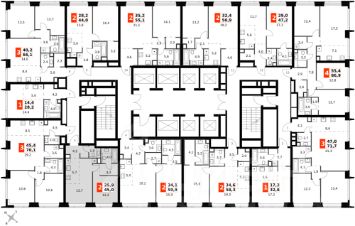 Продаётся 2-к квартира номер 1096 общей площадью 45 кв.м. на 37-м этаже 57 этажного здания. Без отделки. Цена с учётом скидки.
