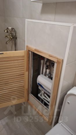 В санузеле установлена душевая кабина, сделан тёплый пол и тёплая стена между коридором и квартирой, установоен проточный водонагреватель, на случай отключения центральной подачи горячей воды .