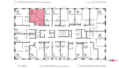 Комплекс располагается в 5 минутах ходьбы от станции метро "Солнцево" и в шаговой доступности от железнодорожной станции "Новопеределкино".
