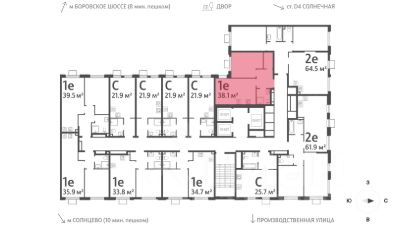 Продается 1-комнатная квартира общей площадью 38.1 кв. метров на 16 этаже жилого комплекса Лучи.