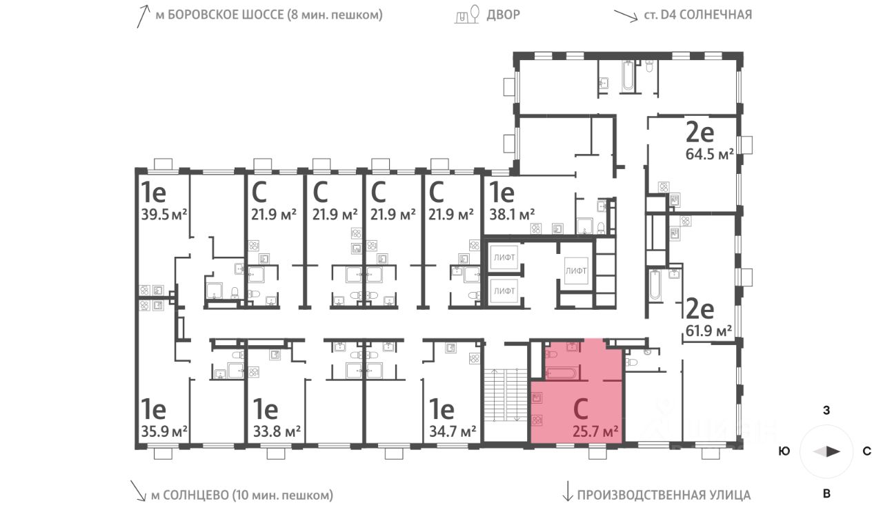 Комплекс располагается в 5 минутах ходьбы от станции метро "Солнцево" и в шаговой доступности от железнодорожной станции "Новопеределкино".