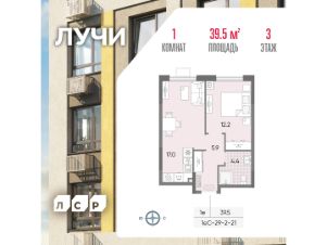 Продается 1-комнатная квартира общей площадью 39.5 кв. метров на 3 этаже жилого комплекса Лучи.