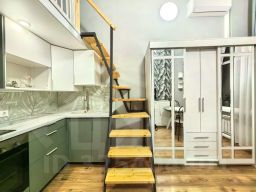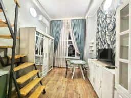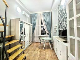 Внутри выполнена стильная отделка в светлых тонах с использованием современных материалов, установлены новые инженерные коммуникации и противопожарная сигнализация. Помещение отлично освещено за счет высоких панорамных окон, высота потолков 3,80 метров.