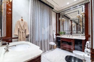 Использованы только самые дорогие материалы, включая ценные породы камня и дерева, а также текстиль высшего качества. Современная бытовая техника от Miele и Gaggenau, итальянская мебель и стильные светильники от известных люксовых брендов создают атмосферу безупречного стиля и комфорта.