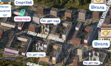 Развитая инфраструктура. Закрытый двор и много открытых детских площадок. Спортзал, для активных видов спорта, в зимнее время заливается каток. Парк Филатов луг с беговыми дорожками. Супермаркеты, кафе, рестораны, салоны красот, спортивные клубы , тренажерки и ТЦ Саларис.
