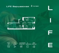 В районе Москворечье-Сабурово продается 2-комнатная квартира площадью 70.7 м². Она расположена на 3 этаже в 261 корпусе нового жилого квартала LIFE Варшавская.