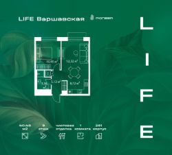 В районе Москворечье-Сабурово продается 1-комнатная квартира площадью 40.48 м². Она расположена на 9 этаже в 261 корпусе нового жилого квартала LIFE Варшавская.