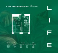 В районе Москворечье-Сабурово продается 1-комнатная квартира площадью 37.88 м². Она расположена на 9 этаже в 261 корпусе нового жилого квартала LIFE Варшавская.