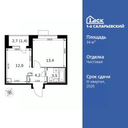 Продаётся 1-к квартира номер 702 общей площадью 34.5 кв.м. на 23-м этаже 24 этажного здания. Чистовая отделка. Цена с учётом скидки.