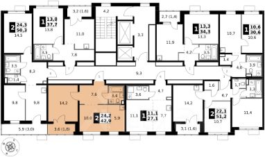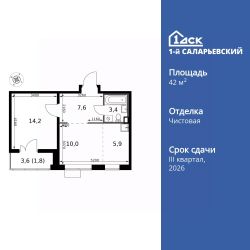 Продаётся 2-к квартира номер 580 общей площадью 42.9 кв.м. на 5-м этаже 24 этажного здания. Чистовая отделка. Цена с учётом скидки.