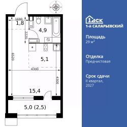 Продаётся квартира-студия номер 69 общей площадью 29.7 кв.м. на 8-м этаже 25 этажного здания. Отделка Whitebox. Цена с учётом скидки.