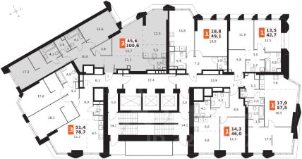 Продаётся 3-к квартира номер 1478 общей площадью 100.6 кв.м. на 43-м этаже 47 этажного здания. Без отделки. Цена с учётом скидки.