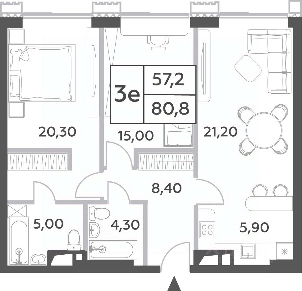 Продается евро 2-комнатная квартира на 43 этаже в строящемся доме (Корпус 1/Башня Creativity).