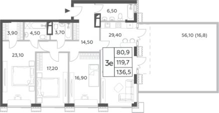 Общая площадь квартиры 136,5 м2. Высота потолков 3,1 м. создают дополнительный простор, панорамные окна Schuco 2,7 м с предусмотренной функцией проветривания, наполнят вашу квартиру светом и свежим воздухом. Функциональная, продуманная планировка позволит уютно разместиться молодой семье с детьми: большая кухня-гостиная, две отдельные комнаты, современная мастер-спальня с собственной ванной комнатой, два санузла . Наличие собственной террасы 56,1 м позволит расширить полезную площадь квартиры. А благодаря живописным открывающимся видам на Москва-Сити,МГУ, ландшафтный заказник "Долина реки Раменки" , она станет излюбленным местом в квартире для всей семьи . На этаже расположены кладовые помещения.