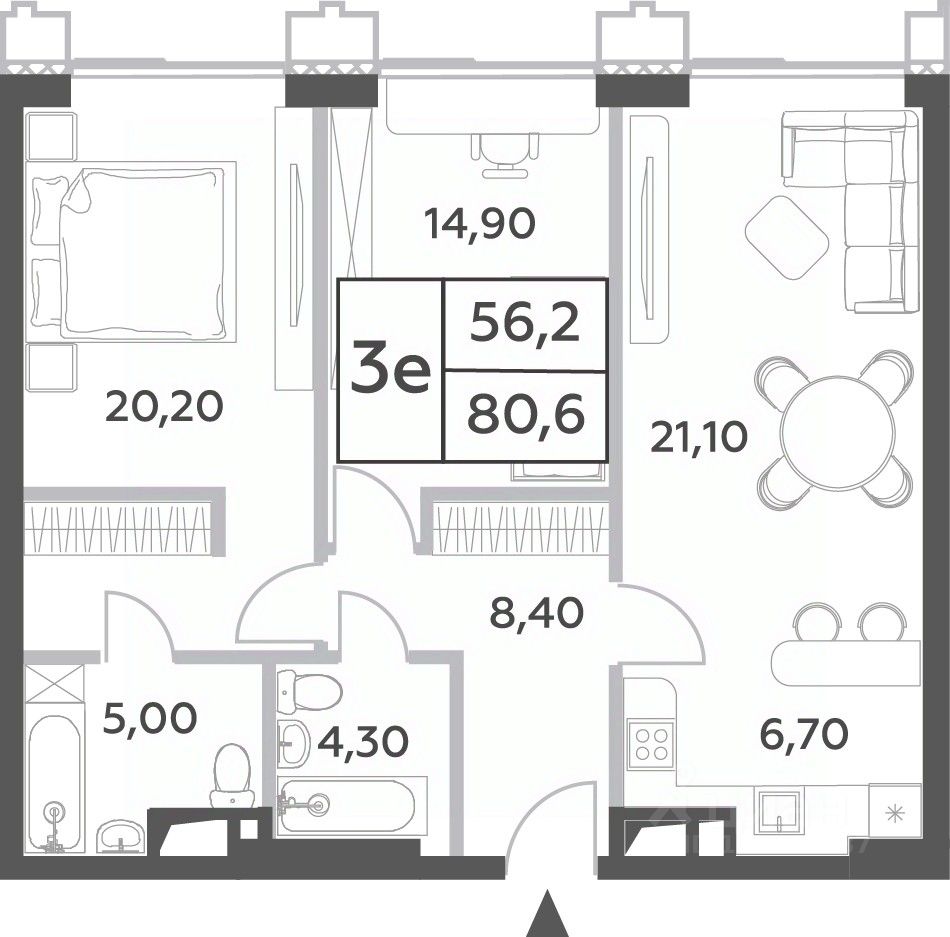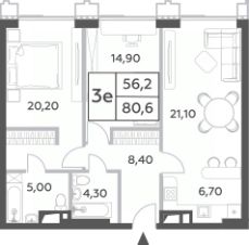 Общая площадь квартиры 78,9 м2. и высота потолков от 3 метров открывают широкие возможности для экспериментов с интерьером. Просторная кухня-гостиная с возможностью гармоничного зонирования пространства, две полноценных ванных комнаты, мастер-спальня, наличие гардеробных зон делают эту квартиру по настоящему комфортной для проживания и приема гостей.