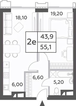 Общая площадь квартиры 54,8 м2. и высота потолков от 3 метров открывают широкие возможности для экспериментов с интерьером. Вместительная гардеробная зона у входа в квартиру, просторная кухня-гостиная, спальня с собственной гардеробной - вот составляющие комфорта для жизни.