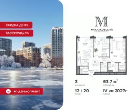 Продаётся 3-к квартира 63,7 кв.м. в ЖК "Михалковский" на 12-м этаже 20 этажного дома.