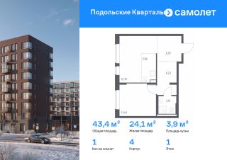 Строим кварталы для жизни с заботой о будущем. Предлагается 1-комнатная квартира комфорт-класса 43,37 кв.м в корпусе 4 на 1 этаже, в ЖК "Подольские Кварталы"