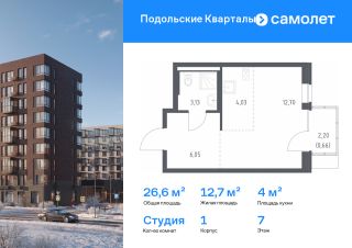 Строим кварталы для жизни с заботой о будущем. Предлагается квартира студия комфорт-класса 26,57 кв.м в корпусе 1 на 7 этаже, в ЖК "Подольские Кварталы"