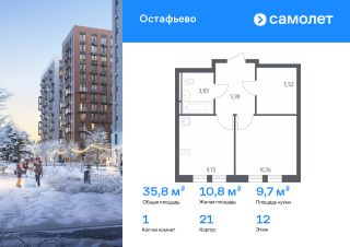 Строим кварталы для жизни с заботой о будущем. Предлагается 1-комнатная квартира комфорт-класса 35,81 кв.м в корпусе 21 на 12 этаже, в ЖК "Остафьево"