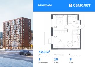 Строим кварталы для жизни с заботой о будущем. Предлагается 1-комнатная квартира комфорт-класса 42,9 кв.м в корпусе 15 на 3 этаже, в ЖК "Алхимово"