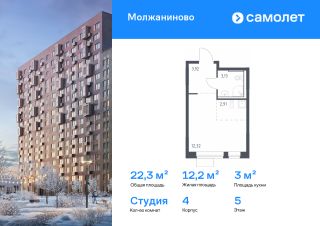 Строим кварталы для жизни с заботой о будущем. Предлагается квартира студия комфорт-класса 22,28 кв.м в корпусе 4 на 5 этаже, в ЖК "Молжаниново"