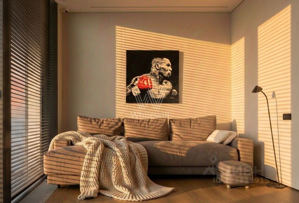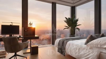 Апартаменты с 1 спальней общей площадью 86 м² в комплексе небоскрёбов премиум-класса Neva Towers. Апартаменты расположены на 51 этаже в башне Т1. Выполнена авторская отделка в современном стиле. В оформлении использованы фактуры дерева и гранита.