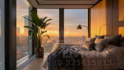Функциональная планировка включает кухню-гостиную, спальню, ванную комнату, хозяйственная комнату и прихожую с гардеробной. Апартаменты меблированы и укомплектованы бытовой техникой. Панорамные окна, ориентированные на юго-запад, открывают виды на город.