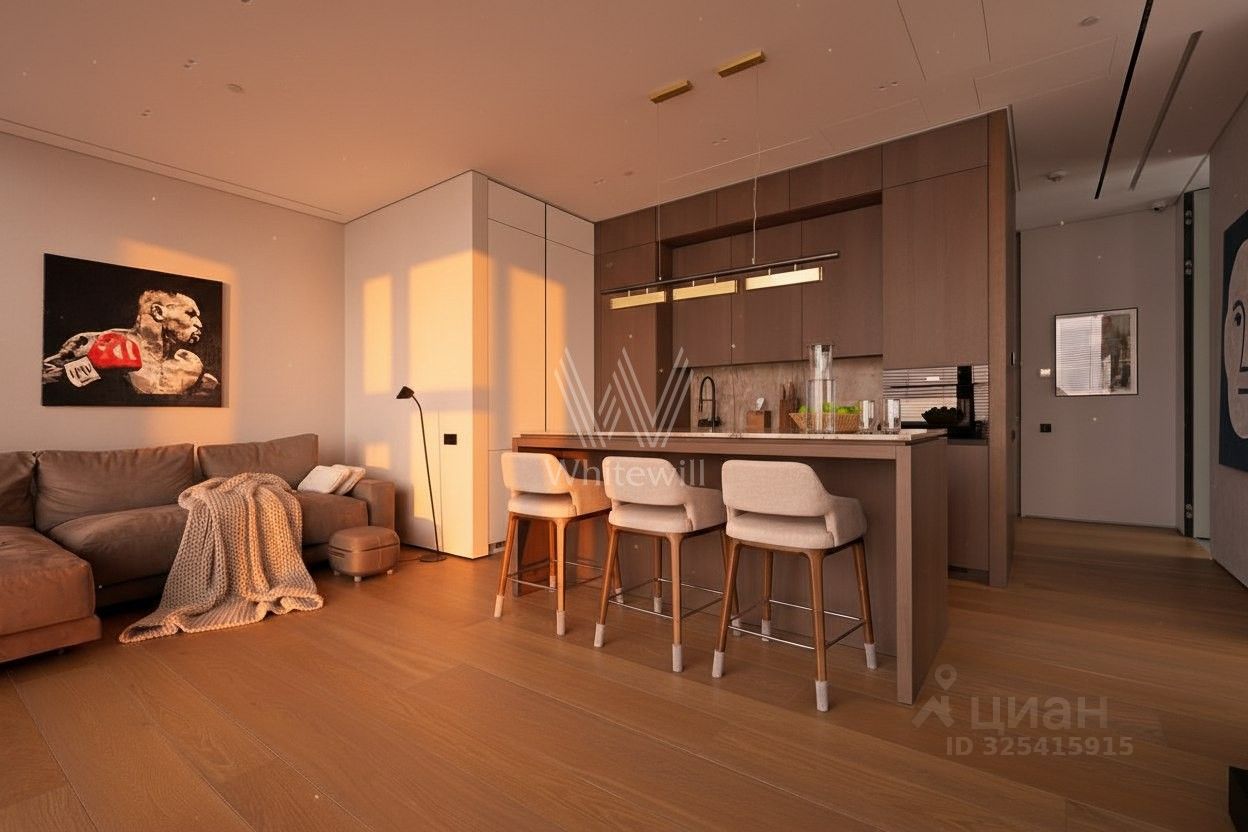 Главное о локации. Жизнь здесь сосредоточена в самом сердце Москва-Сити. Утро можно начать с прогулки по набережной или короткой дороги в детский сад 2112 — всего 10 минут пешком. Старшие дети учатся в "Школе будущего" 2030, школе 1726 или английской школе 1232. Днём удобно заглянуть в "Афимолл" за покупками, в супермаркет "Перекрёсток" или на тренировку в фитнес-центр World Class. Вечером жители выбирают рестораны и кафе торговой галереи или концерты и события в деловом квартале. Метро "Международная" и аэроэкспресс в аэропорт Домодедово находятся в трёх минутах ходьбы, а выезд на ТТК и Звенигородское шоссе делает передвижения быстрыми.