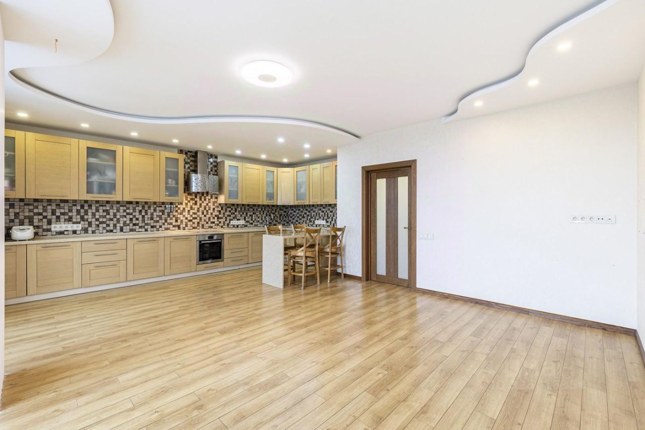 Площадь 130 м², включая присоединенные лоджии, с продуманной планировкой: светлая гостиная-столовая-кухня, три изолированные спальни, гардеробная и два просторных санузла. Квартира полностью укомплектована: встроенные шкафы, двухъярусная детская кровать, современный кухонный гарнитур с техникой (посудомойка, встроенный холодильник и морозильник, духовой шкаф, варочная панель, вытяжка), стиральная и сушильная машины, кондиционеры в каждой комнате. Множество мест для хранения, отличная шумоизоляция и высококачественная отделка с премиальными материалами.