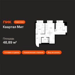 Новостройка! Продается 2-комн. кв-ра площадью 48,89 кв.м, (Корпус 3.4, Секция 4) 3 этаж 32-этажного дома в Квартал Мит от ПИК. "Квартал Мит" строится в экологически чистом районе Митино, где по соседству расположен большой лесопарк, а с двух сторон протекают реки Сходня и Журавка. Для семей с детьми здесь появится школа и два детских сада.