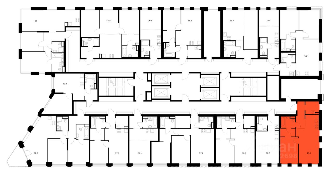 Продаётся 1-комн. квартира площадью 45,5 кв.м на 11 этаже 39 этажного дома (Корпус 1.3, Секция 4) проекта ПИК Москворечье. Светлый просторный подъезд на уровне земли, функциональная планировка, большие окна, c отделкой.