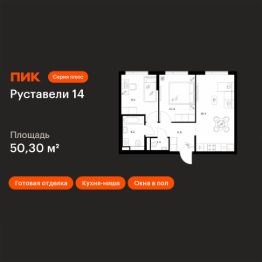 Продаётся 2-комн. квартира площадью 50,3 кв.м на 15 этаже 16 этажного дома (Корпус 3.6, Секция 2) проекта ПИК Руставели 14. Светлый просторный подъезд на уровне земли, функциональная планировка, большие окна, c отделкой.